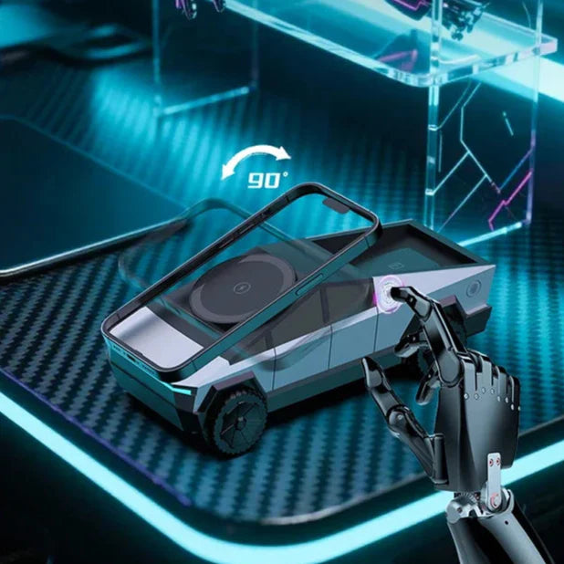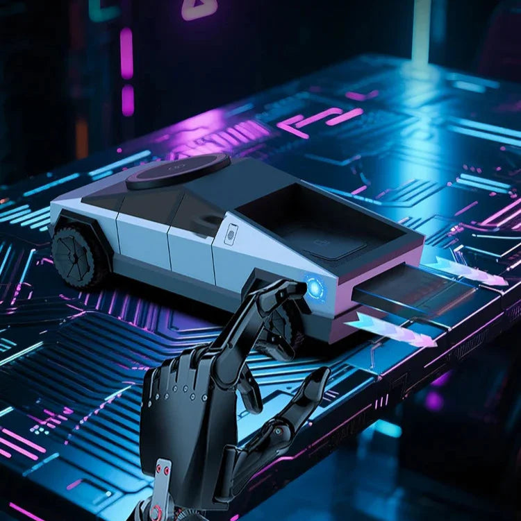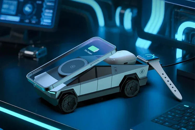 CyberDock™™ is more than just a charger. It looks like a mini Cybertruck and can charge 3 devices at the same time. Cool to look at, easy to use.