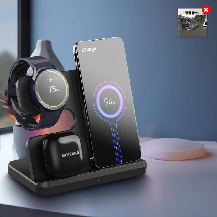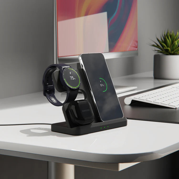 You know that feeling of all those loose cables on your nightstand or desk that make charging your devices a mess? The DockCharger Samsungs Pro Edition offers the solution. This charging station ensures that all your Samsung devices are charged neatly in one place. With its sleek design and powerful charging capabilities, this DockCharger is an indispensable addition to your (home) office or bedroom.